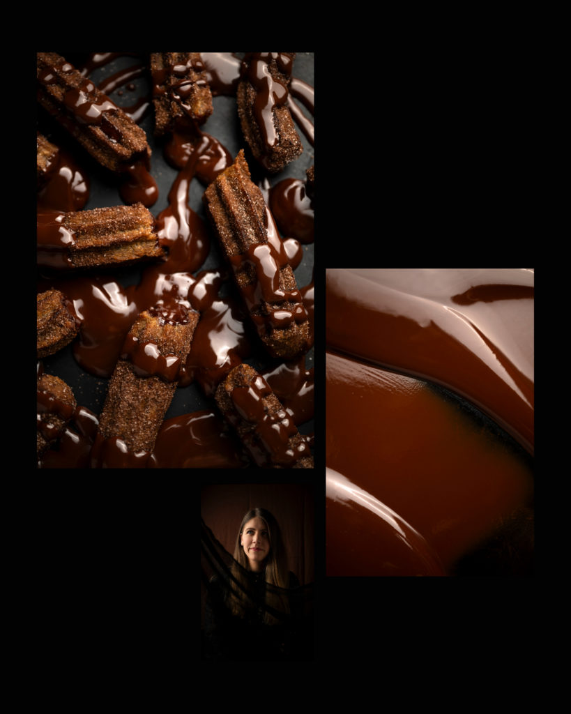 L’exposition repose sur un format triptyque qui dévoile trois facettes indissociables : la texture du chocolat, la création culinaire qu’elle sublime et la personnalité du chef. Ce choix esthétique et narratif reflète l’envie de Géraldine de raconter une histoire complète, où chaque élément trouve naturellement sa place dans une oeuvre cohérente .