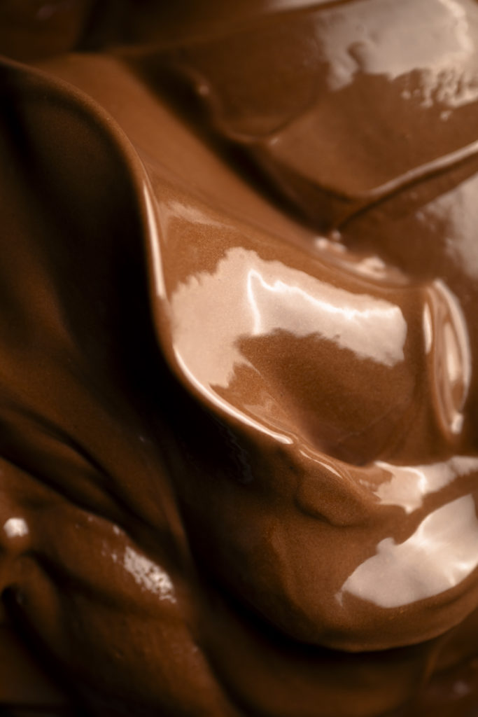 Photographier le chocolat, c’est avant tout une histoire de fascination pour Géraldine Martens. « Le chocolat, c’est mon ingrédient préféré et je suis fascinée par sa capacité à capter la lumière et à la refléter », explique-t-elle. Ce qu’elle aime dans cette matière, c’est sa dualité : à la fois brute et délicate, fixe et en perpétuel mouvement. Qu’il soit coulant, crémeux ou fondant, le chocolat possède une vitalité presque organique qui semble évoluer en fonction de celui qui le travaille.