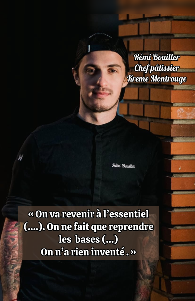 J’ai recueilli les témoignages des chefs pâtissiers Xavier Thill (chef pâtissier-gérant de la pâtisserie “Désiré” en Ardèche), Thomas Moulin (pâtissier consultant), Rémi Bouiller (chef pâtissier et gérant du salon de thé Kreme à Montrouge), et Desty Brami (chef pâtissier exécutif du Château Ferrières et des boutiques Madeleines by Ferrières), pour comprendre leur vision de la pâtisserie de demain. Tous semblent s’accorder sur un même constat : Il est temps de revenir aux sources !