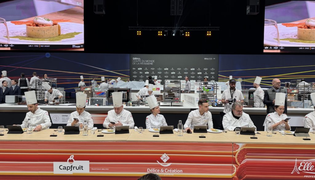 Dès le premier jour de compétition, le 24 janvier 2025, au SIRHA de Lyon, l’atmosphère était chargée d’énergie dans l’arène de la Coupe du Monde de Pâtisserie, où se mêlaient adrénaline et fébrilité. Des milliers de supporters, vêtus aux couleurs de leurs pays, étaient venus en masse pour soutenir les 9 équipes en lice, brandissant drapeaux et accessoires. Tous les regards étaient tournés vers les artistes pâtissiers, déterminés à repousser les limites de leur créativité pour atteindre l’excellence et se hisser au sommet de leur discipline.