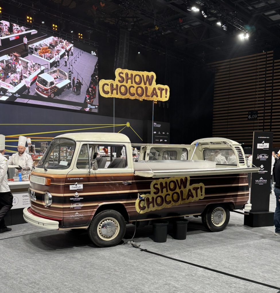Pendant la pause et à la grande surprise du public, un foodtruck fit son apparition sur scène. À bord, les chefs étaient prêts à donner le ton pour une épreuve qui allait marquer un tournant dans ce concours: le Show Chocolat apportant une dimension « street food » au concours, avec des créations chocolatées finalisées sous nos yeux ébahis. L’idée était de transformer l’acte de créer un dessert en une performance interactive, avec un esprit moderne et audacieux. Les candidats devaient élaborer 26 créations chocolatées, dont six factices, tout en respectant l’objectif de valoriser des produits locaux et de limiter le gaspillage alimentaire.