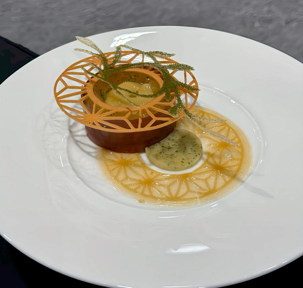 ⭐ Instant suspendu avec le dessert aérien et poétique de l’Italie en forme de nuage, jouant sur la thématique du rêve et du vol. L’association du citron d’Amalfi, du safran et de la noisette évoquaient l’âme italienne dans toute sa splendeur.