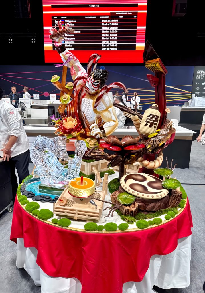 🇯🇵 Japon : L’équipe a présenté un buffet raffiné inspiré du patrimoine culturel nippon. Une lanterne japonaise et une sculpture en sucre représentant le théâtre Kabuki ont impressionné par leur précision et leur esthétique soignée.