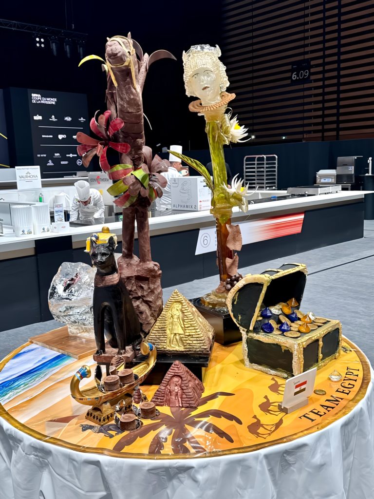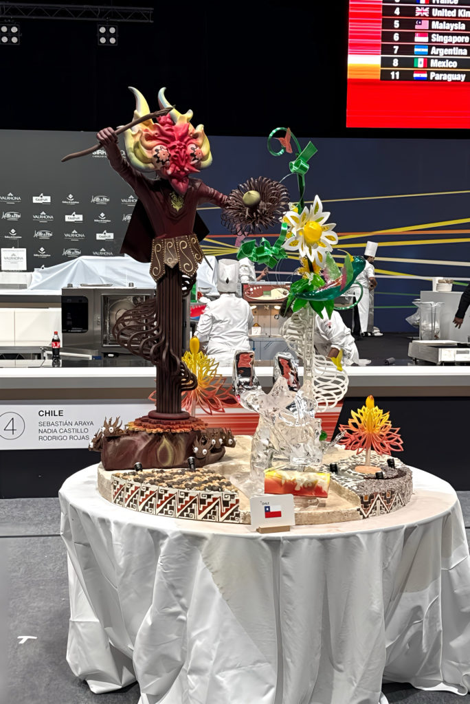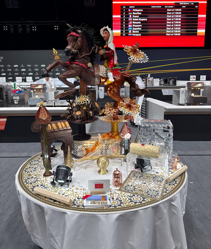 Leur mission : réaliser trois entremets glacés aux fruits, dix desserts de restaurant mettant en avant un ingrédient issu de leur terroir, vingt-six créations sucrées présentées lors du Show Chocolat – grande nouveauté de cette édition –, trois pièces artistiques en glace, chocolat et sucre, ainsi qu’un buffet final honorant leur patrimoine national, thème du concours. Chaque création devait raconter une histoire, mettre en avant la richesse culturelle et gastronomique de leur pays à travers leurs créations. Cette approche permettait d’apporter un aspect narratif et émotionnel à leurs réalisations.