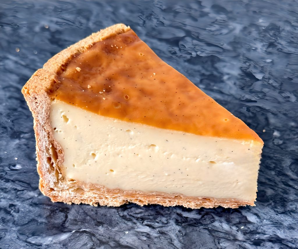 - Un flan majestueux, haut et tremblotant, dont la crème vanillée nappe le palais avant que la pâte feuilletée caramélisée n’apporte son croquant en écho.