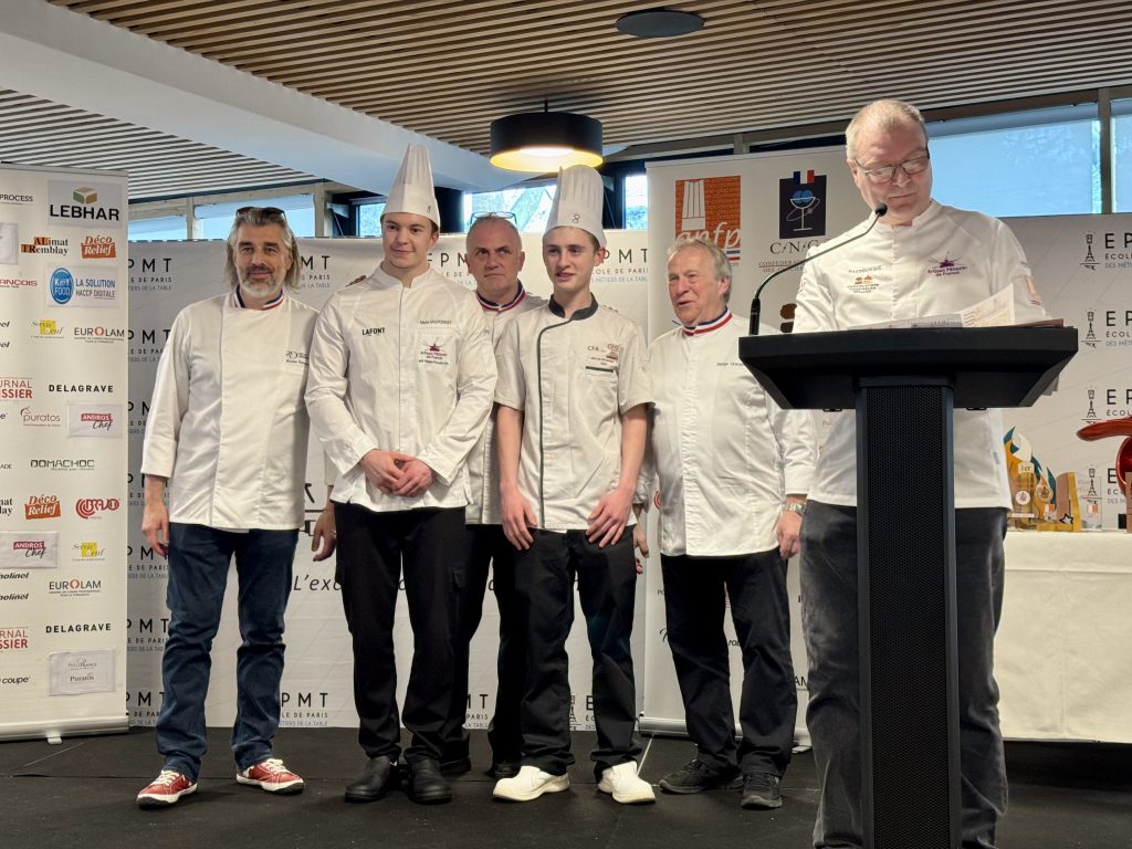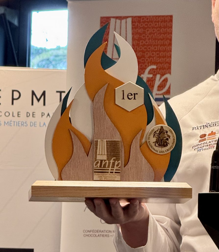 Juste avant la remise des trophées, Jean-Charles Balthazard a tenu à souligner un autre symbole fort de cette édition : les trophées 2025, ont été conçus par les apprentis ébénistes du CFA d’Eschau pour être remis aux apprentis pâtissiers. Une manière de valoriser l’ensemble des métiers d’art et de tisser des liens et de mettre à l’honneur les valeurs chères de la pâtisserie : la transmission et le partage.