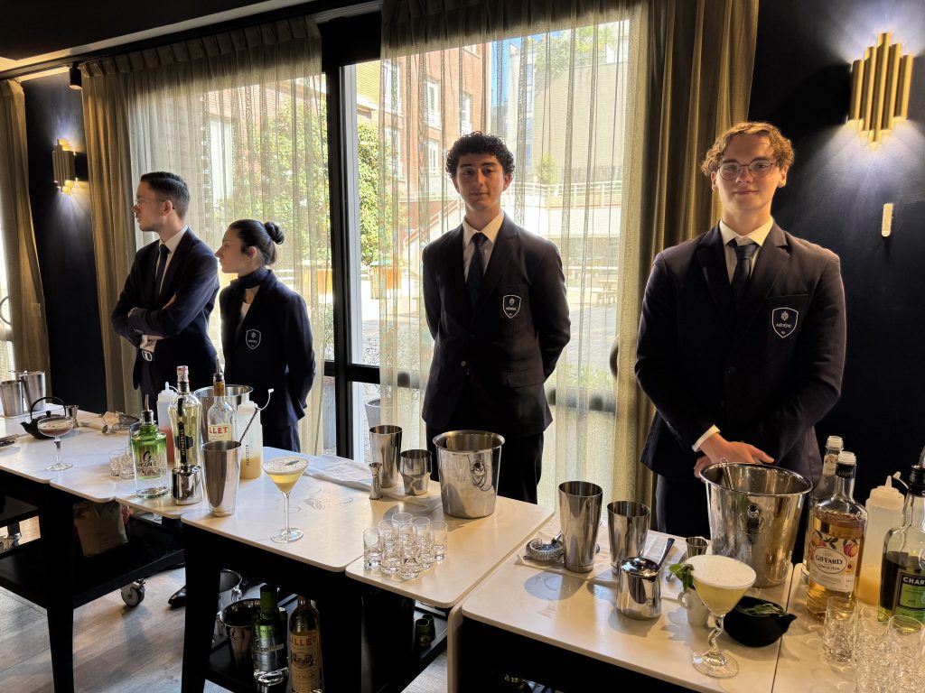 Le temps d’un dernier service, et la salle bourdonne d’une énergie renouvelée. Les étudiants barman, toujours positionnés au fond de la salle, redoublent d’efforts et de créativité. Ils viennent présenter fièrement leurs dernières créations, vérifiant une dernière fois l’équilibre des saveurs, les yeux brillants d’excitation et de concentration.