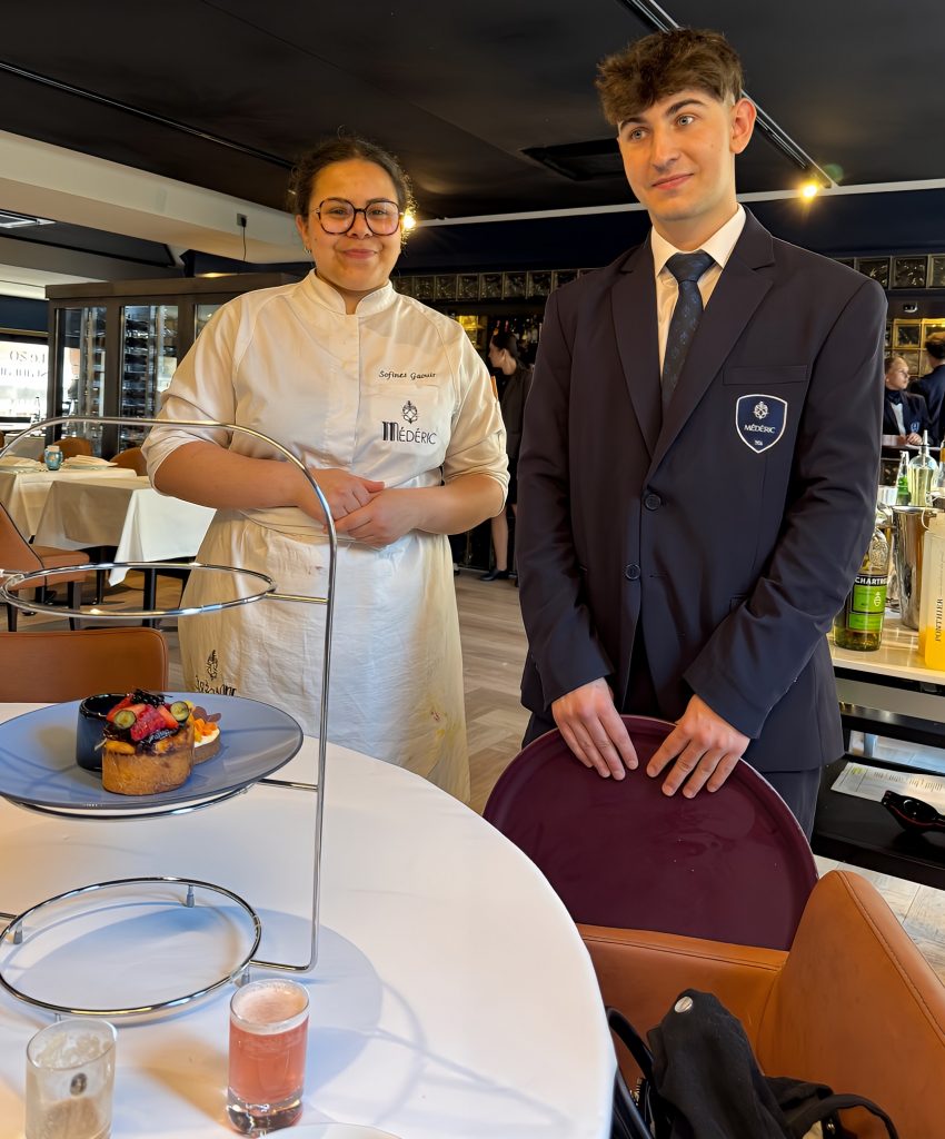 Le 30 avril dernier, les élèves de l’école hôtelière MÉDÉRIC (Paris), encadrés par la cheffe-enseignante Marine Mateos et par la talentueuse cheffe pâtissière Jessica Préalpato, ont présenté un Tea Time d’exception en trois séquences, au restaurant d’application « Le 20 » de l’établissement qui s’articulait autour de l’accord entre cocktails et desserts, nous offrant une immersion dans la philosophie de la meilleure cheffe pâtissière du monde tout en mettant en lumière la créativité et le savoir-faire des étudiants, acquis tout au long de leur formation.