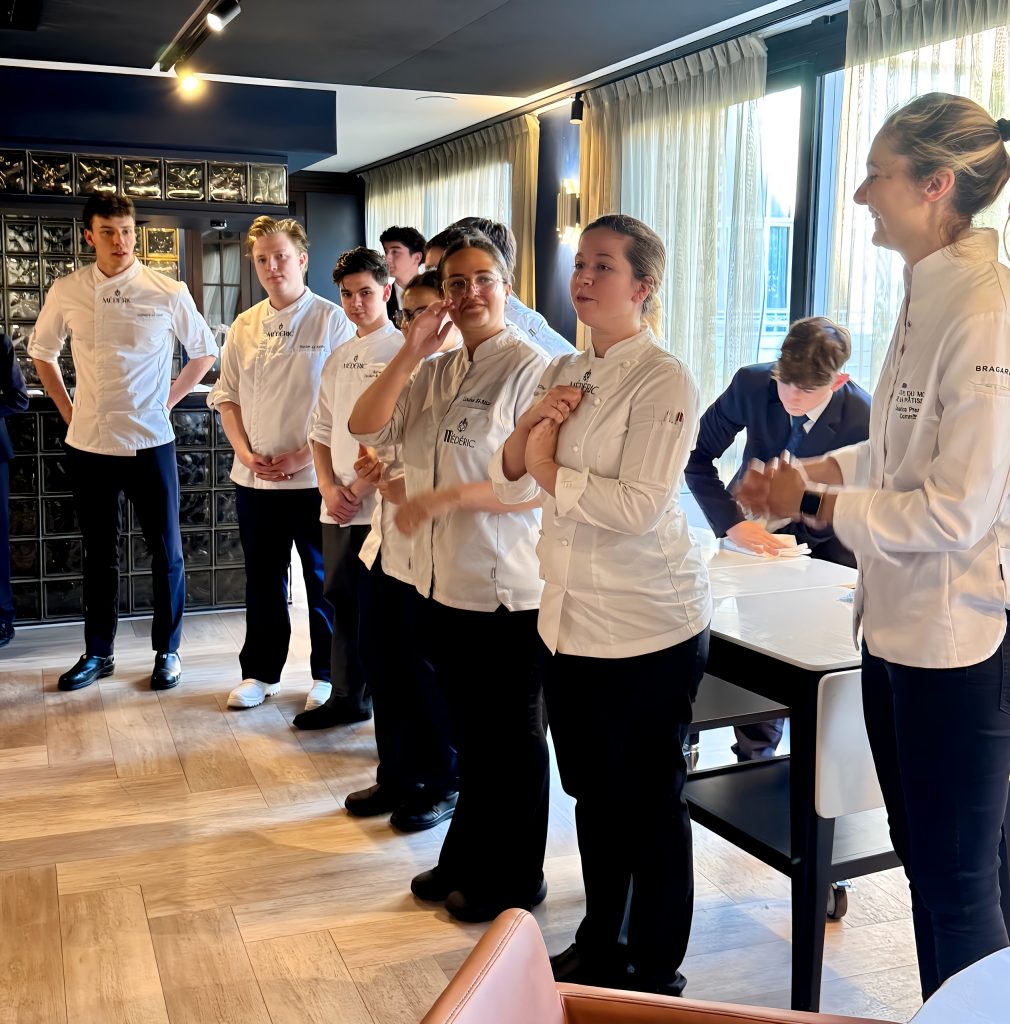Au-delà de la dégustation, cette séquence illustre l’importance de la transmission entre Jessica Préalpato et les étudiants de l’école hôtelière Médéric. Il ne s’agit pas simplement d’apprendre des recettes ou des techniques, mais de comprendre la philosophie qui guide chaque création : respecter l’ingrédient, révéler sa vérité, et oser jouer avec les contrastes et les imperfections.