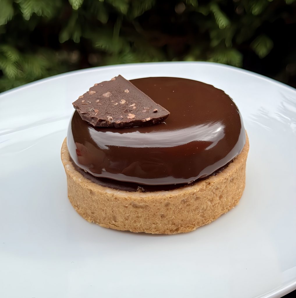 Une belle intensité maîtrisée dans la tartelette café-pécan. La pécan soutenait les arômes du café de qualité sans tomber dans l’amertume tout en apportant du caractère et le café ( dans la mousse et le crémeux) dévoilait pleinement sa puissance aromatique sans être masquée par le sucre. Les textures, savamment nuancées, sont travaillées avec légèreté, avec juste ce qu’il faut pour soutenir la mâche et exalter les arômes comme, par exemple, le croustillant praliné, la tuile au chocolat ornée de pécan ou encore le fond de tarte sablé d’épaisseur moyenne. Idem pour la pâtisserie chocolat-noisettes : un biscuit dense au chocolat, fondant et pourtant léger en bouche, un croustillant praliné noisette pour tempérer la puissance du crémeux au chocolat noir enveloppant et arrondir les saveurs et quelques noisettes torréfiées pour ajouter contraste et relief.
