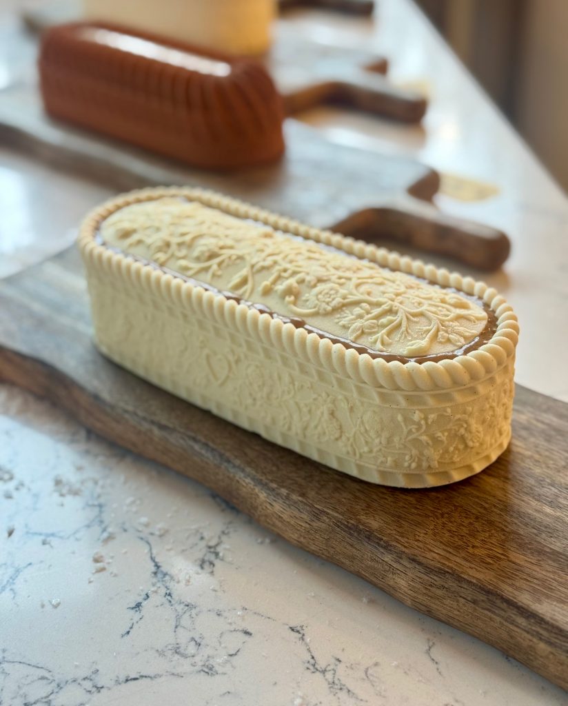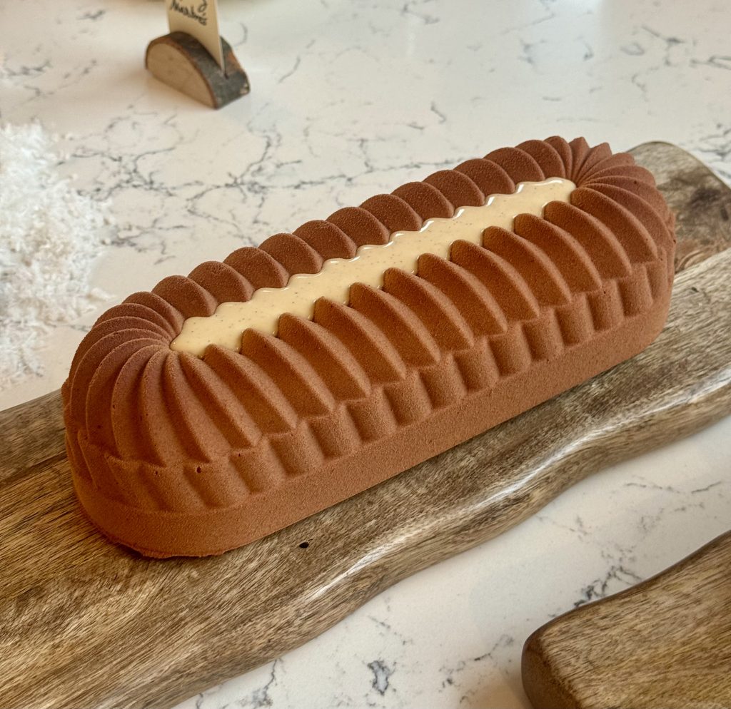 Cette bûche est une réminiscence : celle du riz au lait attendrissant de la maman de Maxime. Une gourmandise d’enfance revisitée avec délicatesse. Et dès la première bouchée, on comprend que Maxime n’a pas cherché seulement à reproduire ce souvenir : il l’a sublimé, transformé en émotion pâtissière.