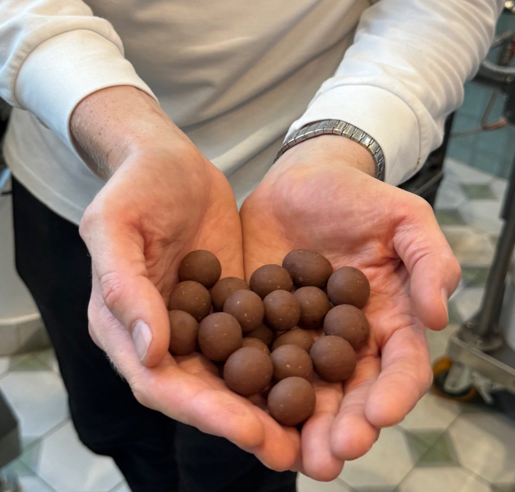 Et ce ne sont pas des paroles en l’air, c’est une réalité qui se ressent chaque jour dans son travail. Les œufs par exemple, proviennent de la ferme familiale, choyés avec tendresse par sa sœur Noémie et sa femme Claire qui veillent sur les poules comme sur des petits trésors. Le lait, c’est celui de Corinne et Christophe Decorde. Quant aux noisettes, elles sont récoltées avec soin au sein de son verger par sa famille de coeur : Christine, Sophie, Laurent et Yannick puis mariées amoureusement au cacao sauvage Bolivien de Casey qui trouve et lui fournit des fèves rares, uniquement des cacaos endémiques des forêts primaires préservées sans variétés hybrides, et à celui de leur grand ami Nicolas Berger, l’alchimiste inspiré du cacao.