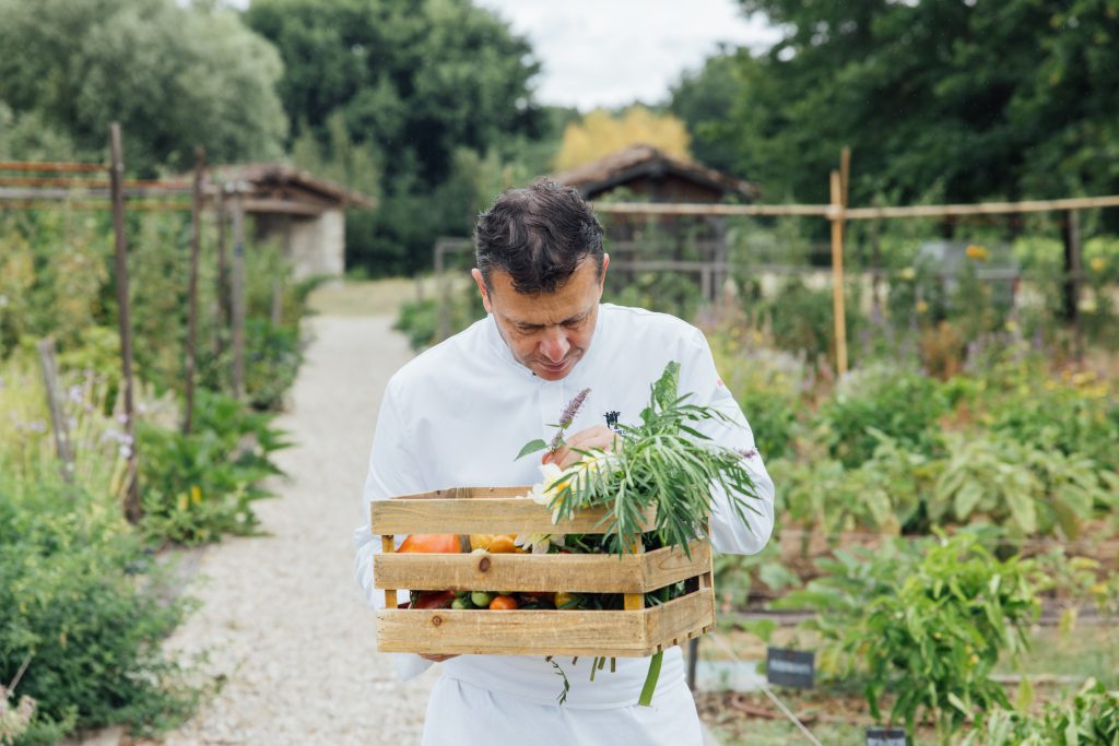 Chef Nicolas Masse au potager – Crédit photo : Agence Pancake